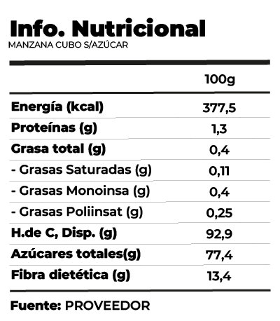 Cubos de manzana deshidratada, 100% natural y sin azúcar añadida 🌿🍏. Perfectos para snacks saludables, repostería o como topping en cereales y yogures, ideales para toda la familia.