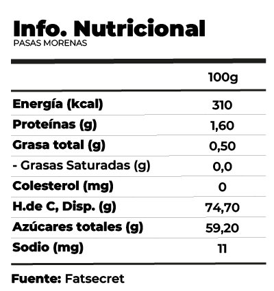 Pasas morenas naturales, dulces y jugosas, perfectas como snack saludable o para agregar a repostería y ensaladas. 🌿✨ Conservan todo el sabor y los nutrientes de la fruta.