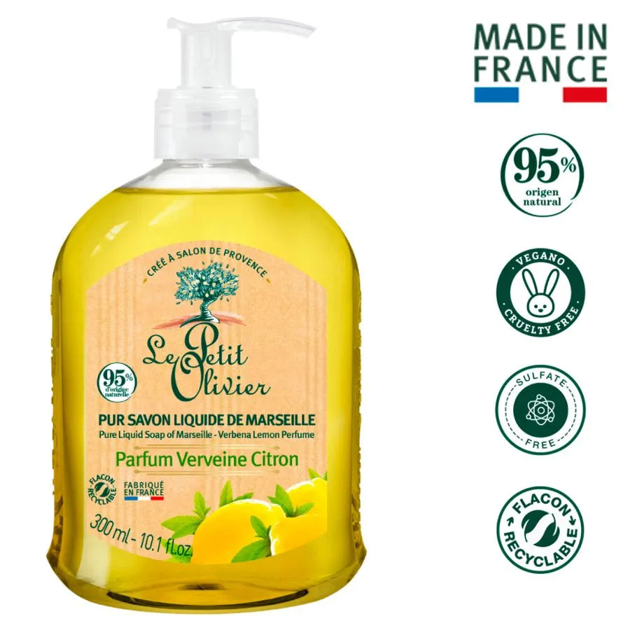 Jabón líquido de uso diario formulado con aceites de origen vegetal, inspirado en la tradicional elaboración de los jabones de Marsella. Su combinación de verbena y limón entrega una fragancia fresca y revitalizante, mientras limpia suavemente la piel sin resecarla.