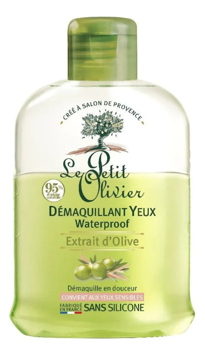 El desmaquillante bifásico para ojos sensibles de Le Petit Olivier (125 ml) es una fórmula vegana con 95% de ingredientes naturales que combina aceite de oliva (limpieza) y extracto de hojas de olivo (protección) para retirar maquillaje incluso waterproof sin dejar sensación grasa. Es libre de siliconas, sulfatos, alcohol y parabenos, adecuado para piel sensible