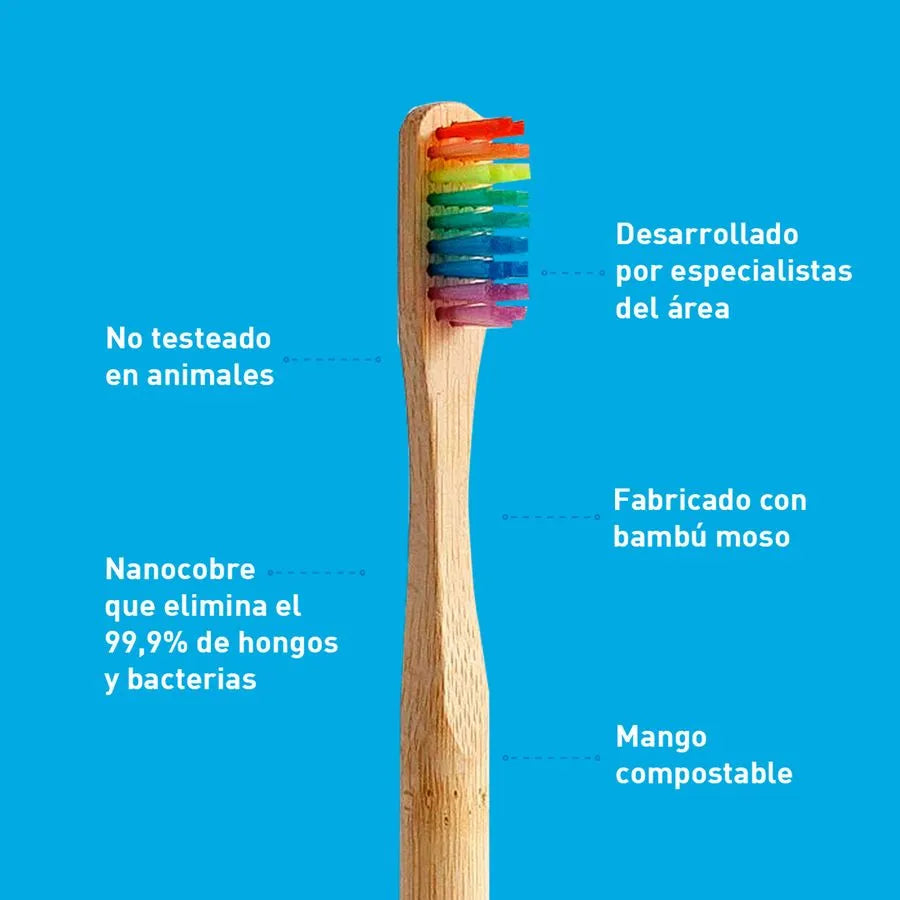 Cepillo dental de adulto elaborado con mango de bambú biodegradable y cerdas suaves diseñadas para limpiar eficazmente sin dañar encías ni esmalte. Es una alternativa ecológica para quienes buscan reducir el uso de plástico sin sacrificar comodidad ni rendimiento. Su acabado natural y liviano brinda una experiencia de cepillado agradable y consciente.