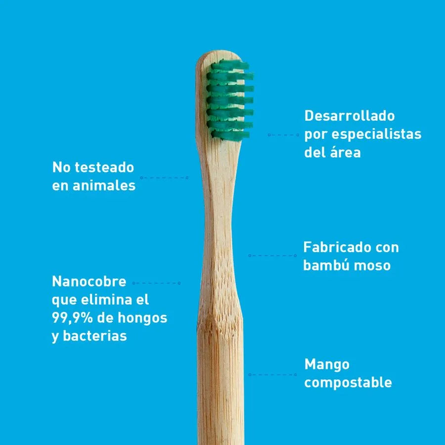 Mango de bambú biodegradable, cerdas suaves de nylon libre de BPA.
